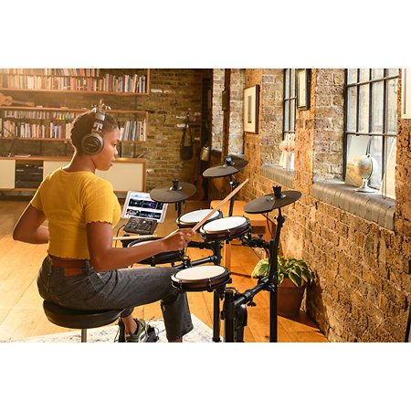 El kit Alesis Nitro Max es mucho ms que una batera electrnica estndar. Repleto de funciones premium, proporciona una experiencia de juego excepcional para bateristas de todos los niveles. El kit incluye una caja de doble zona de 10″ con un rodoide rojo Strata, as como tres toms de una sola zona de 8″ con el mismo acabado. Esta combinacin impulsa una respuesta sonora realista y dinmica. Los parches de malla blanca de última generacin garantizan una respuesta tctil realista, mientras que el juego de platillos de 10″ incluye un hi-hat, funcin crash with chocke y un ride para una variedad de sonidos de platillos autnticos. Adems, el bastidor plegable ayuda a reducir el desorden cuando la batera no est en uso, lo que es ideal para espacios reducidos. Este paquete completo tambin incluye un pedal de bombo, un pedal de hi-hat, una llave inglesa, baquetas, cables, hardware de montaje y una fuente de alimentacin, lo que garantiza que tenga todo lo que necesita para comenzar a tocar de inmediato. El kit Alesis Nitro Max va un paso ms all al incorporar funciones modernas como Bluetooth y una entrada auxiliar, lo que le permite tocar junto con pistas de acompañamiento o conectar un dispositivo mvil para un aprendizaje interactivo. Adems, un soporte para telfono incorporado facilita el acceso a recursos educativos en lnea. Con ms de 440 sonidos de batera incorporados de las bibliotecas BFD y Strata, as como 48 kits (32 preestablecidos y 16 kits de usuario), obtienes una amplia gama de sonidos para expresar tu creatividad. Las 60 pistas de reproduccin integradas, el secuenciador, el metrnomo y la grabadora añaden posibilidades de composicin e interpretacin. La conectividad USB/MIDI permite conectar la batera a un ordenador para una fcil integracin en el software de produccin musical. Adems, con la entrada adicional de Tom and Crash, podrs ampliar aún ms tus opciones de sonido en el futuro. Como beneficio adicional, el kit incluye el software de sonido de batera BFD Player y ofrece lecciones en lnea gratuitas, incluida una suscripcin gratuita de 90 das a Drumeo y una suscripcin gratuita de 30 das a Melodics Premium con 60 lecciones exclusivas. Adems, obtienes un instrumento de batera virtual BFD Player gratuito con un paquete de expansin. El Alesis Nitro Max Kit es mucho ms que una batera electrnica, es una experiencia musical completa para bateristas de todos los niveles.