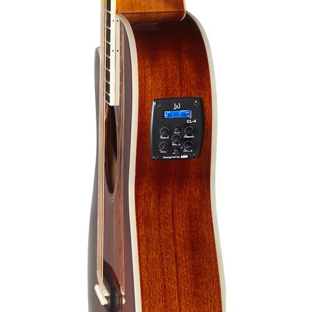 La JN Guitars BES-ACE DCB LH Auditorium es una guitarra electroacústica para zurdos de la serie Bessie, que combina una esttica refinada con caractersticas de sonido de alta calidad. Con su tapa de abeto macizo y su acabado Cherryburst oscuro brillante, esta guitarra llama la atencin de inmediato. Diseñado en formato auditorio, ofrece una excelente proyeccin y una mayor comodidad al tocar, ideal para guitarristas folk y entusiastas del fingerpicking. Este modelo se distingue por su construccin en caoba para fondo, aros y mstil, lo que proporciona una calidez y riqueza de sonido bien equilibradas. La tapa de abeto macizo añade respuesta dinmica y claridad en los agudos, complementando el carcter de sonido redondo y clido del instrumento. El mstil de caoba con perfil en forma de C es particularmente cmodo para sesiones de interpretacin prolongadas, y el diapasn de madera negra, con incrustaciones de puntos y dobles puntos en el duodcimo traste, permite una fcil navegacin en el mstil. El puente de madera negra y los puentes de hueso garantizan una transmisin fiel de las vibraciones de las cuerdas y garantizan una entonacin excelente. Esta eleccin de materiales, a menudo favorecida por su calidad de sonido y durabilidad, tambin se encuentra en los afinadores con baño de aceite niquelados, que garantizan una estabilidad de afinacin impecable, incluso despus de largas sesiones de interpretacin. En el aspecto electrnico, el BES-ACE DCB LH est equipado con un captador bajo el puente y un ecualizador CL-4 B-Band, que incluye controles de volumen, graves, medios, agudos y presencia. El ecualizador tambin cuenta con un afinador cromtico incorporado, un selector de fase y un indicador de carga de batera, lo que brinda a los músicos la mxima flexibilidad para adaptar el sonido a sus necesidades. El conector de salida de 6,35 mm permite una fcil conexin a un amplificador o sistema de PA, lo que convierte a esta guitarra en una opcin ideal para actuaciones en el escenario o en el estudio.